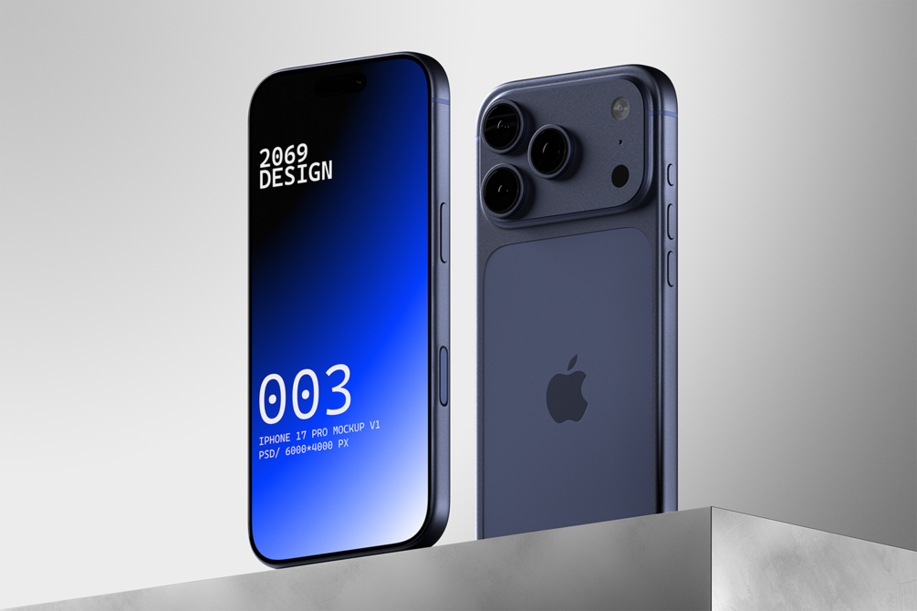 A sleek, next-generation iPhone 17 Pro Mockup Collection featuring ultra-clean, minimalistic renders crafted with precision — built for designers and studios who want premium, future-ready visuals that elevate every presentation.