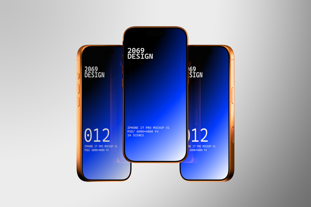 A sleek, next-generation iPhone 17 Pro Mockup Collection featuring ultra-clean, minimalistic renders crafted with precision — built for designers and studios who want premium, future-ready visuals that elevate every presentation.