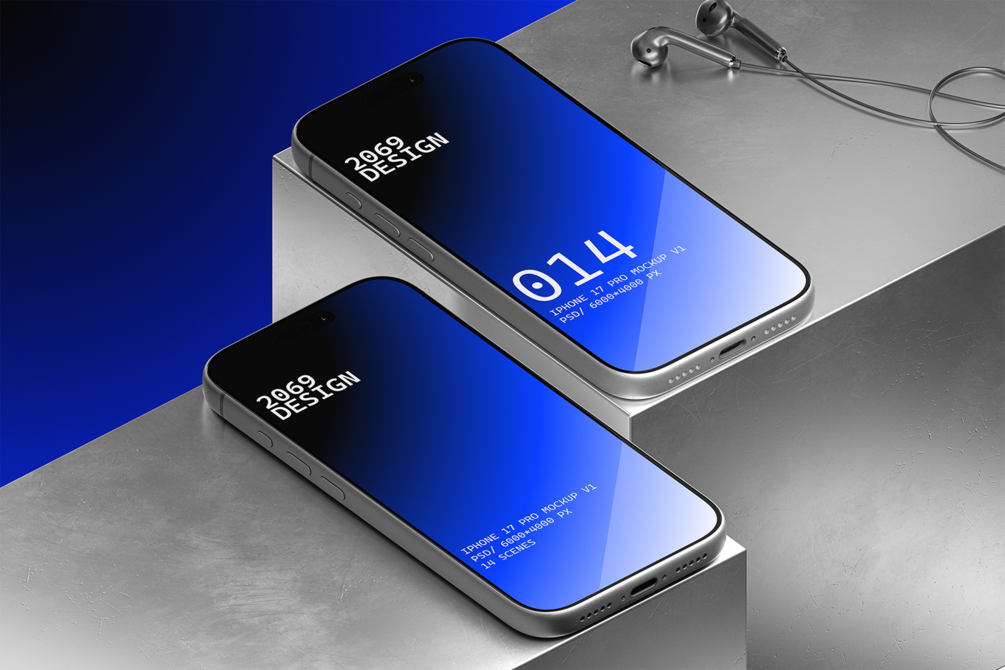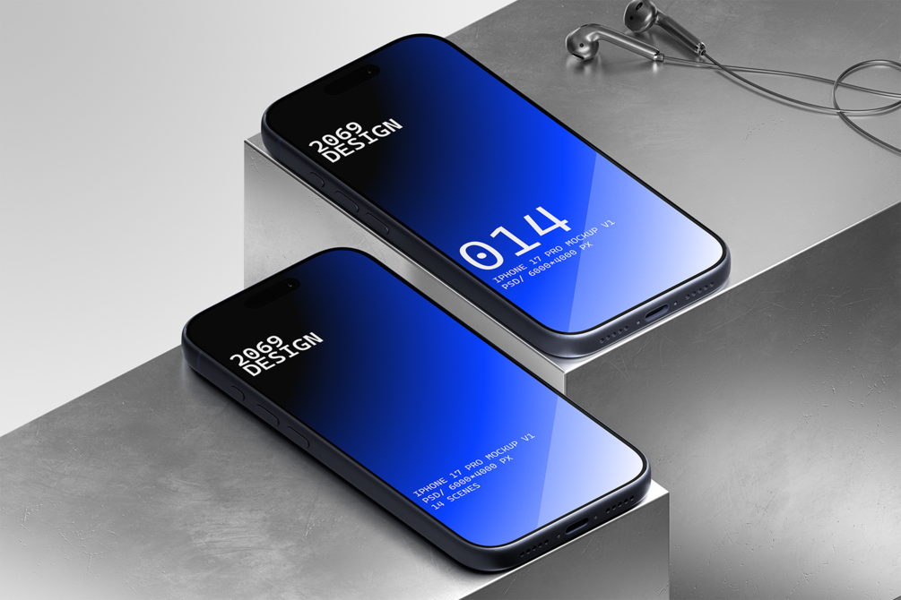 A sleek, next-generation iPhone 17 Pro Mockup Collection featuring ultra-clean, minimalistic renders crafted with precision — built for designers and studios who want premium, future-ready visuals that elevate every presentation.