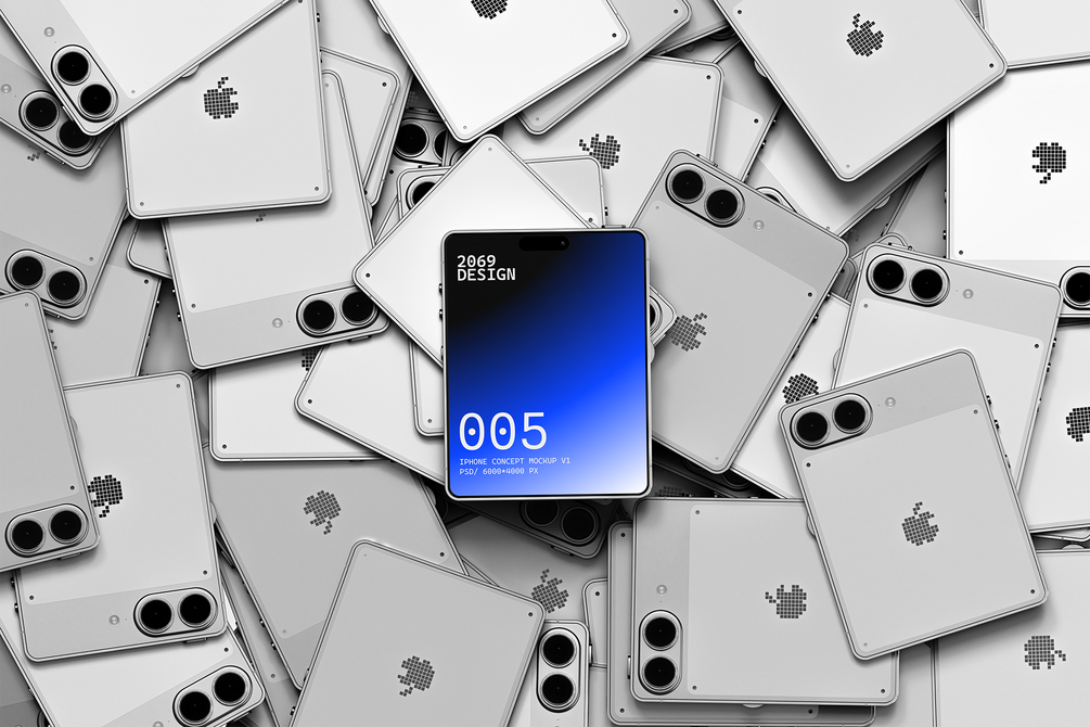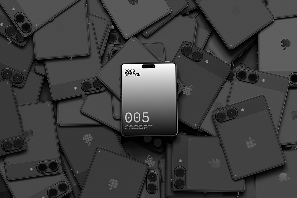 A bold, reimagined iPhone concept with a 4:3 screen ratio and industrial proportions — designed for creators who want futuristic, cinematic visuals that stand apart from standard device mockups.