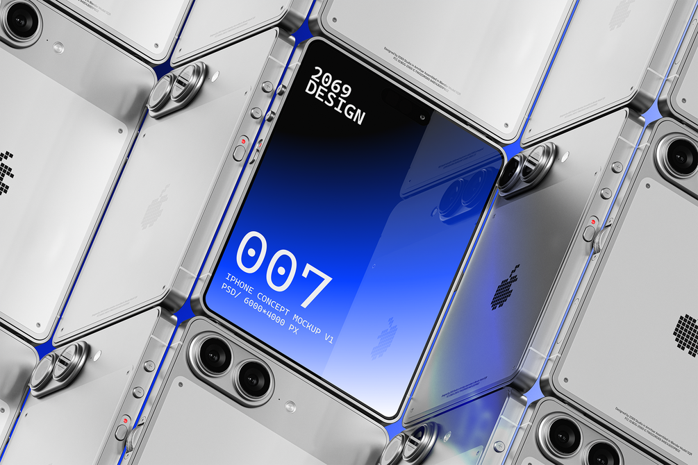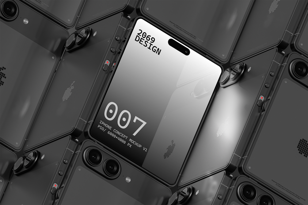 A bold, reimagined iPhone concept with a 4:3 screen ratio and industrial proportions — designed for creators who want futuristic, cinematic visuals that stand apart from standard device mockups.